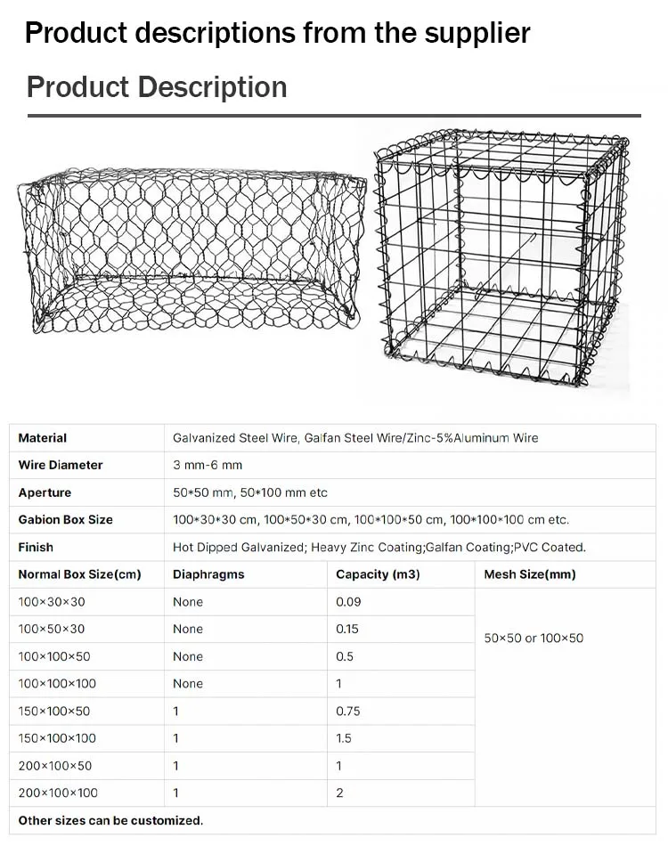 Gabion mesh is a mesh box woven from high-strength galvanized or Galfan-coated steel wire and filled with stones. It is mainly used for riverbank protection, flood control walls, slope reinforcement and ecological protection projects.
